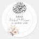 Pegatina Redonda ramo floral elegante de boda rosa y amarillo