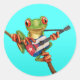 Pegatina Redonda Rana de árbol tocando la guitarra de la bandera cu