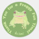 Manía total de ranas de árbol. Fiesta editable Gracias por favorecer a un pegatina de bolsos o tarjetas con una imagen de rana de árbol verde super lindo dibujada a mano. Este es un pegatina DE TEXTO COMPLETO que hace con un nombre de chica/niño de cumpleaños de marcador de posición que necesita ser editado en Zazzle. La imagen de la rana es transparente y se puede cambiar el color de fondo y el tamaño y la posición de la rana. También hay una versión LIMITADA DE TEXTO Gracias pegatina, sin un nombre de chica/niño de cumpleaños de marcador de posición, que no requiere ninguna edición en Zazzle. Este pegatina de Gracias es parte de la colección de Rana de Árbol Verde Cute de productos que están diseñados para niños adoradores de ranas que aman la diversión.