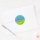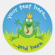 Personalizado de rana príncipe con corona sobre hierba verde bajo el cielo azul. Dos campos de texto personalizado en círculo.