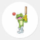 Pegatina Redonda Rana en el críquet con bate de críquet