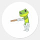 Pegatina Redonda Rana en el críquet con bate de críquet
