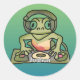 Pegatina Redonda Rana retro callejera con audífonos | Divertido
