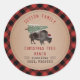 Pegatina Redonda Rancho de árbol de navidad Santa Búfalo Rústico