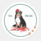 Agradables y adorables Navidades de Woofy que llegan y salen de un pegatina con nuestra acuarela pintada a mano traviesa perro de montaña birmano destrozando Navidades envolviendo papel. El perro de montaña birmano está usando una reverencia del presente que arrancó su pelo. Esta pegatina navideña es perfecta para los amantes de los animales. Todos los ilustraciones son obras de arte originales hechas a mano por Moodthology.