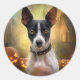 Pegatina Redonda Rat Terrier de Halloween con calabazas asustadas