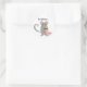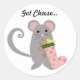 Un lindo ratón Navidad con un cuerpo gris y orejas rosas sosteniendo un caldo rosado lleno de queso. Un dicho lindo, se puede cambiar como se desee.
