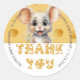 Pegatina Redonda Ratón pequeño en Baby Shower de queso