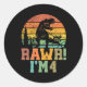 Pegatina Redonda Rawr Im 4 Dinosaur T Rex 4 Años