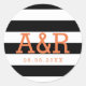 Pegatina Redonda Rayas blancas y negras | Monograma y fecha Naranja