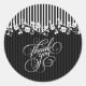 Pegatina Redonda Rayas blancas y negras y encaje floral gracias