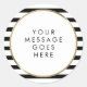 Pegatina Redonda Rayas Negras y Blancas con Mensaje Personalizado e