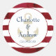 Elegante específico del cliente, moderno, marítimo, rayas rojas, diseño de ancla. Personalízalo con tu nombre y fecha de boda.