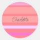 Pegatina Redonda Rayas Rosadas con Nombre Personalizado
