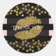 Pegatina Redonda Rayas rosadas y negras tiras de oro Besos