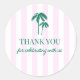 El diseño tiene un bonito fondo de rayas rosadas que añade un toque de elegancia y feminidad, creando un ambiente vibrante y acogedor. Las palmeras verdes de las palmeras pintadas a mano que evocan la exuberante belleza de Palm Springs le dan un toque tropical y lúdico. La fuente de escritura manuscrita de inspiración moderna de mediados de siglo añade un toque personal.