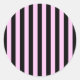 Pegatina Redonda Rayas rosas, franjas negras, patrón rayado