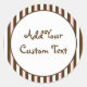 Un color rosa claro, dulce, marrón chocolate y blanco se combinan perfectamente en un patrón divertido de rayas. Agregue el texto personalizado al círculo blanco central o simplemente elimine el texto de ejemplo.