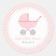 Pegatina Redonda Rayas rosas y blancas, patín, ducha de bebé