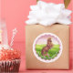 Add a special touch to a young girl’s birthday celebration with these personalized horse-theme stickers. Featuring an illustration of a golden palomino pony frolicking in a lush green pasture with customizable text. A trendy pink scalloped edge border and playful polka dots complete this design. Modify the text with your own sentiment to create a set of one-of-a-kind stickers to add a personal touch to gifts or favor bags.
