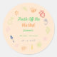 Pegatina Redonda Recién llegada al mercado, ducha nupcial dibujada