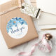 Pegatina redonda de agradecimiento para Baby Shower de Acuarela Floral Azul. Celebra tu baby shower con estilo con estas pegatinas como pegatinas de favor de fiesta, sellos de sobre o etiquetas de favor para agregar un toque de elegancia a tu baby shower. El diseño es perfecto para una fiesta de bebé niña, niño o tema neutral en cuanto al género, con gráficos florales azules modernos, simples y trendy que agregarán un toque chic y lindo a tu evento. Personaliza y compra hoy para hacer que tu baby shower sea inolvidable.