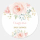 Pegatina Redonda Recuerdo de baby shower de flores rosadas Girly Bl