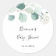 Pegatina Redonda Recuerdo de Baby Shower de Follaje Verde de Eucali