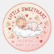 Agrega un toque de amor a tu celebración con estas adorables pegatinas de baby shower "Pequeño Corazón". Con una preciosa bebé durmiendo en una nube, rodeada de querubines de Cupido y corazones brillantes de color rosa, estas etiquetas redondas son perfectas para una baby shower con tema del Día de San Valentín.