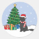 Pegatina Redonda Recuperador plano y árbol de Navidad