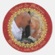 Pegatina Redonda Red and Gold Ornate Custom Photo