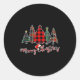 Pegatina Redonda Red Black Green Buffalo Plaid Merry Christmas Tree