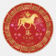 Pegatina Redonda Red de caballo zodiaco chino/ID de oro 542