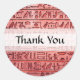 Un conjunto de pegatinas rojos redondos "Gracias" con jeroglíficos antiguos grabados en piedra. ¡Las palabras "Gracias" son personalizable!