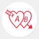 Pegatina Redonda Red Double Hearts with Cupids Arrow and Initials