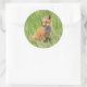 Pegatina Redonda Red Fox Kit en césped cerca de den