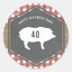 Pegatina Redonda Red Gingham Pig Burlap Birthday Bbq
