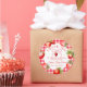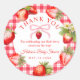 Pegatina Redonda Red Gingham Strawberries Baby Shower Thank You