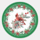 Pegatina Redonda Red Mockingbird Poinsettia Borders Green