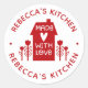 Un pegatina personalizado "hecho con amor" que presenta una linda casa roja con un corazón y las palabras, hechas con amor. Personalízalo añadiendo tu propio nombre. Un toque de bonito para todos tus regalos caseros. Diseñado para ti por Blackberry Boulevard.