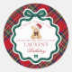 Pegatina Redonda Red Tartan Plaid Christmas Bear Birthday Favor