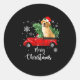 Pegatina Redonda Red Truck Merry Christmas Tree Golden Retriever Ch