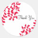 Diga gracias con estos elegantes pegatinas florales. Un elegante fondo blanco con viñas y hojas rojas.