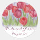 Pegatina Redonda Red Watercolor Tulips Boda Fecha Novia Groom