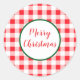 Pegatina Redonda Red White Check MERRY CHRISTMAS