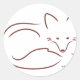 Dibujo esquemático de un zorro rojo curvado, con la cabeza arriba y mirándote. **Nota** Apareciendo bajo el ilustracion de zorro rojo, es el término taxonómico "Vulpes vulpes"