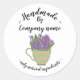 Tacup floral casero hecho a mano, etiqueta redondeada elegante y sencilla. Editable para que puedas añadir tu propio nombre de empresa y lema, se puede usar para productos caseros o hechos a mano.