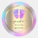 Pegatina Redonda Reflexología Pies de Bebé Holograma Oro Púrpura