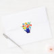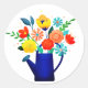 Pegatina Redonda Regadera Azul Elegante y Flores Rojas Amarillas