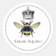 Pegatina Redonda Regal Bee Y Crown Custom Name Bookplate